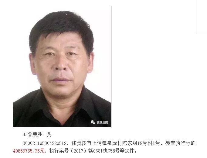 根据《中华人民共和国民事诉讼法》和《最高人民法院关于公布失信被执行人员名单信息的若干规定》的规定,贵溪市人民法院现对以下未履行生效法律文书确定义务的失信被执行人予以曝光,欢迎广大市民予以监督、举报: