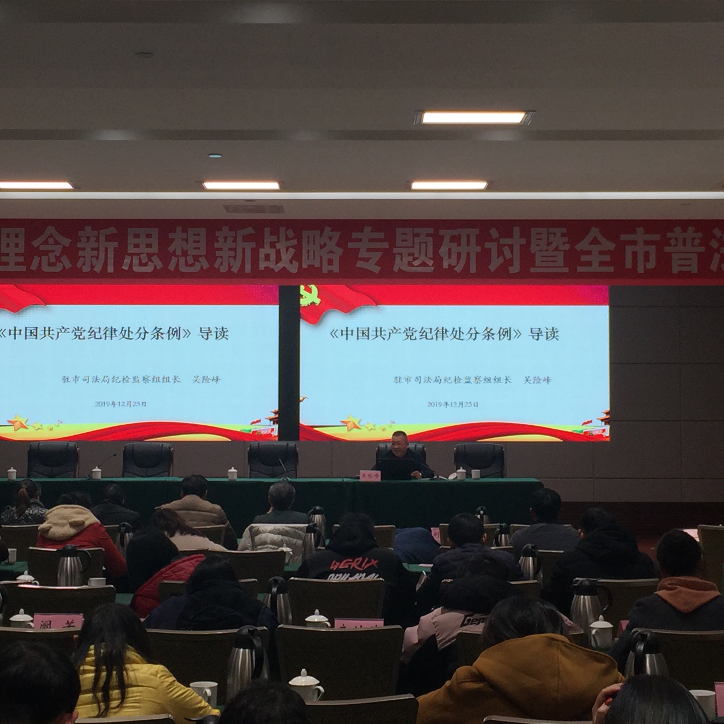 市委党校副校长王家茂就《习近平全面依法治国新理念新思想新战略》进行了专题辅导,市纪委市监委驻司法局纪检监察组组长吴险峰作了《中国共产党纪律处分条例》的专题辅导。