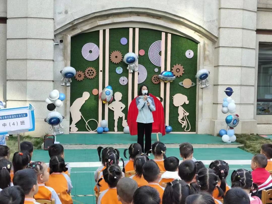 幼儿园紧随时代脉搏,着眼弘扬科学精神、传播科学知识、激发科学梦想的教育追求,为提高小朋友未来核心竞争力而引航、助力。举办了童心探科学,礼赞二十大为主题的科技节活动。邓主任宣布幼儿园第一届科技节正式开幕。小朋友和爸爸妈妈一起揭红布,鸣礼炮,预祝本届科技节圆满举行。