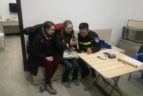 民警王波尝试用中文和两人进行交流,但看情形两人均听不懂中文。“这两名女子一直用英语跟我交流。但因为我对英语词汇掌握较少,交流一再受阻。”随后,他们通过手机翻译软件进行交流,仍然交流不顺畅。这时,王波想起他一位同学会英语,于是他同时视频跟朋友联系上,与这两名女子沟通成功。