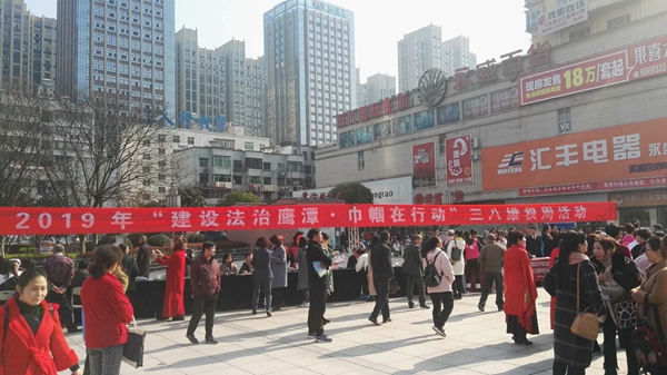 3月12日上午,市司法局组织法律援助中心、妇女法律援助工作站、部分律师事务所律师在市区时代广场开展“三八”维权法律咨询活动。