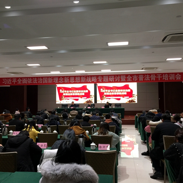 12月23日,365bet体育注册开户_mobilegame365_英国最大赌博365网站市召开习近平全面依法治国新理念新思想新战略专题研讨暨全市普法骨干培训会,市司法局党组成员王万春主持会议并作工作部署,市司法局党组书记、局长盛才明出席会议并作开班讲话。